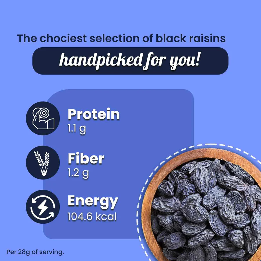 Havenly’s plump sweet-tart Jumbo Black Raisins are sourced directly from the grape capital of India. Naturally sun-dried and seedless, they are of the highest quality and make for a nutritious snack and regal addition to pulao, ice cream and desserts. Have a few every morning to improve skin health and digestion, stem acidity and boost iron and minerals.